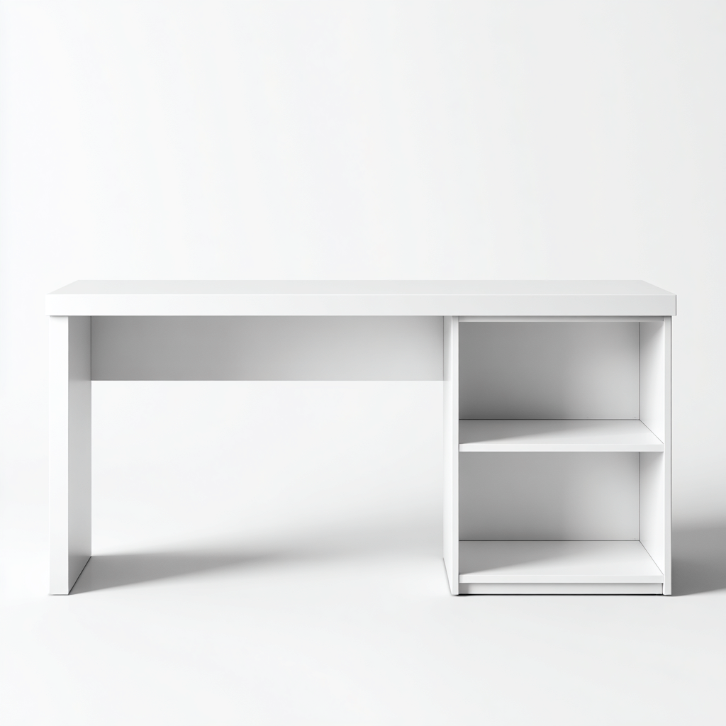 Mesas de oficina madera-lacada 120x60x75 cm - blanco - diseño con estantería lateral