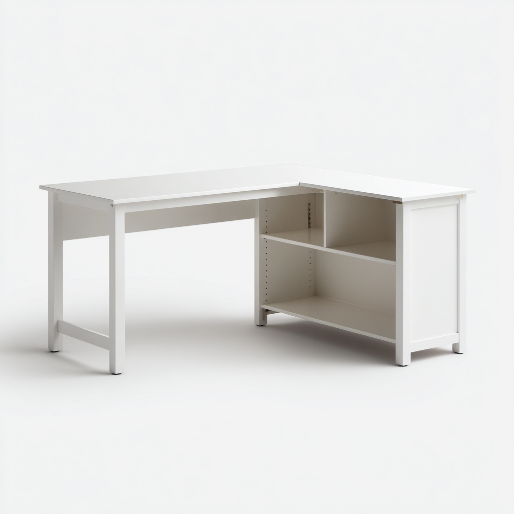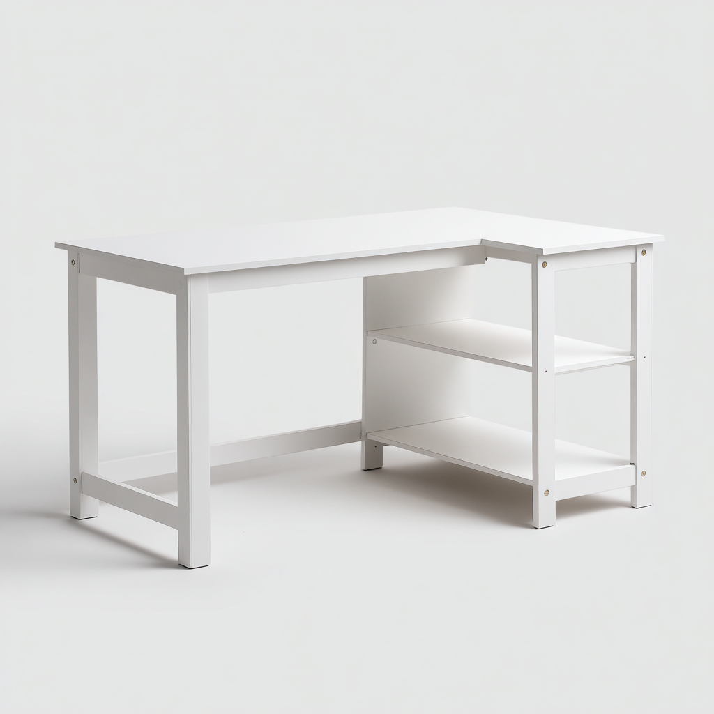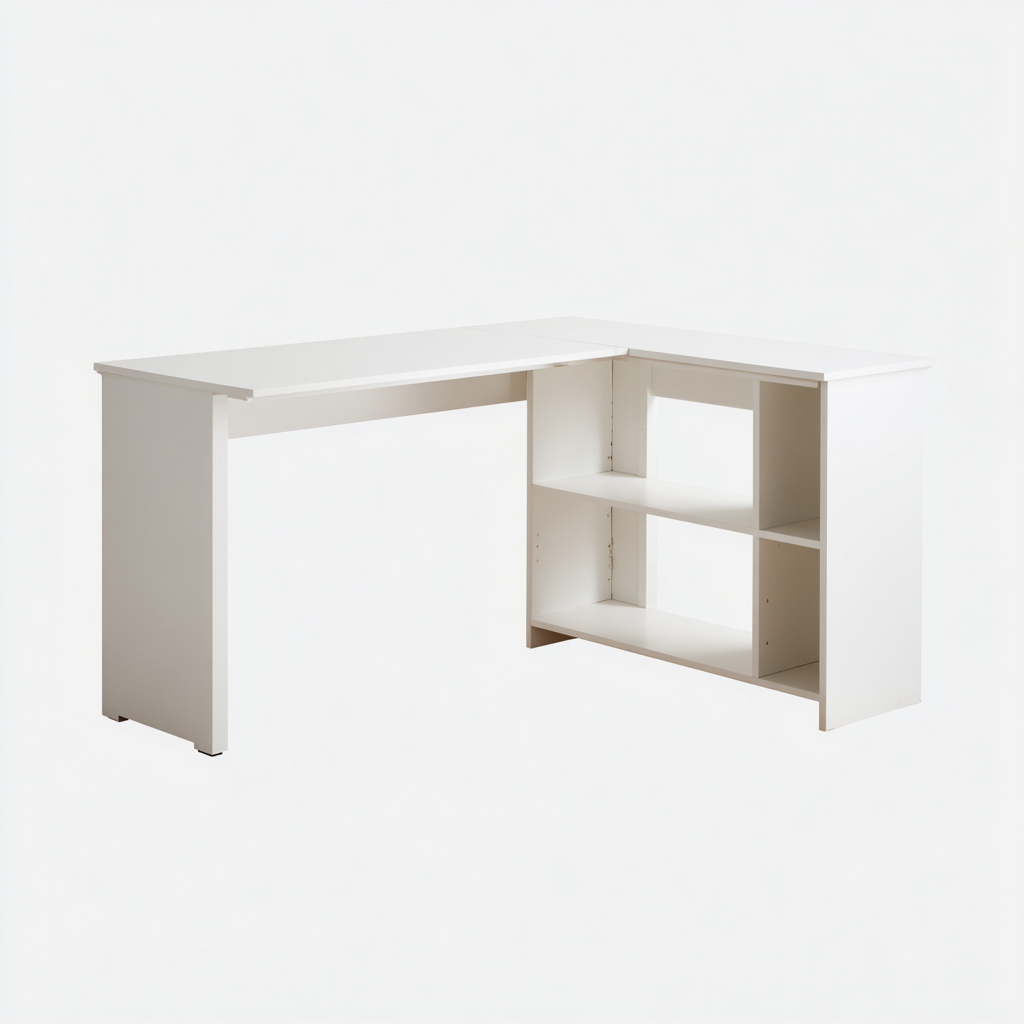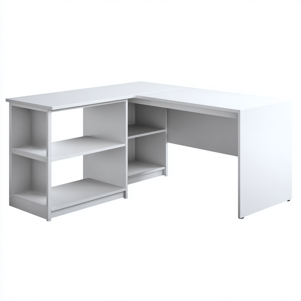 Mesas de oficina madera-lacada 140x120x75 cm - blanco - diseño en L con estantería abierta
