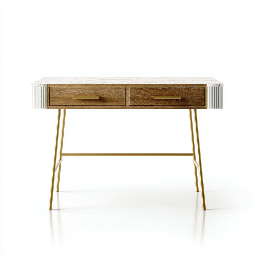 Mesa de oficina 120x55x75 cm - marrón-blanco-dorado - con 2 cajones y diseño moderno