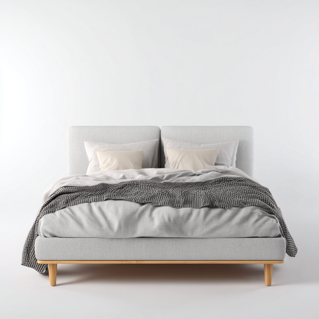 Cama matrimonial tapizada 200x160x90 cm - gris claro - diseño escandinavo