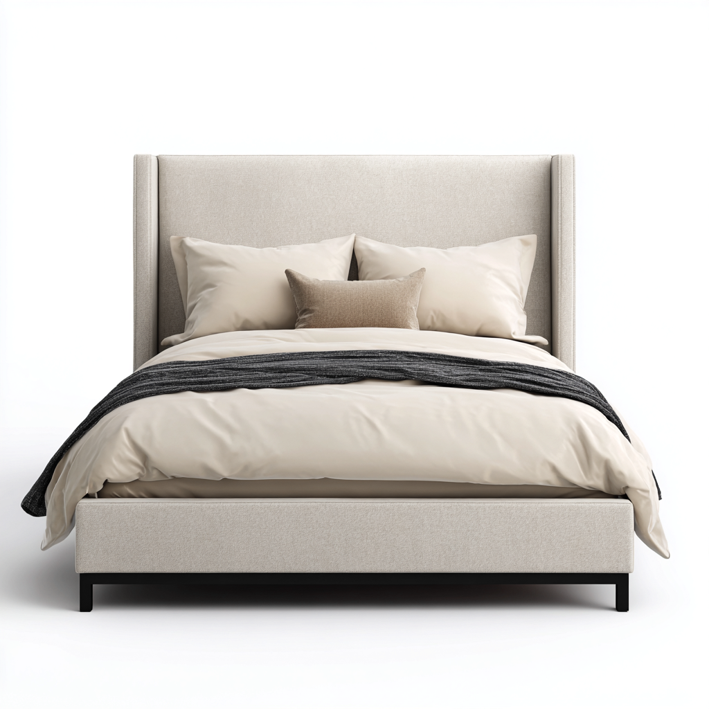 Cama matrimonial tapizada 200x160x90 cm - beige - diseño minimalista