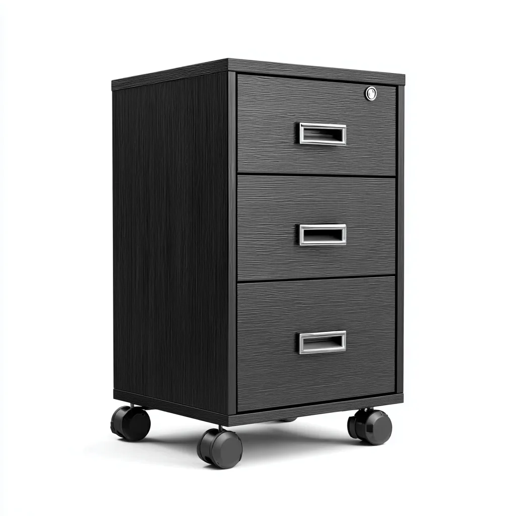 Archivador con ruedas de madera 45x40x65 cm - negro - diseño funcional