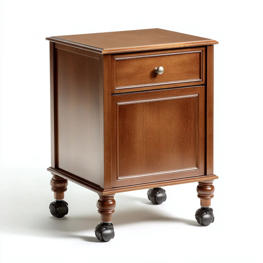 Este archivador de madera en acabado nogal combina un estilo clásico con funcionalidad, proporcionando una solución práctica para organizar documentos en oficinas y espacios de trabajo. Su diseño elevado añade presencia visual sin ocupar demasiado espacio.