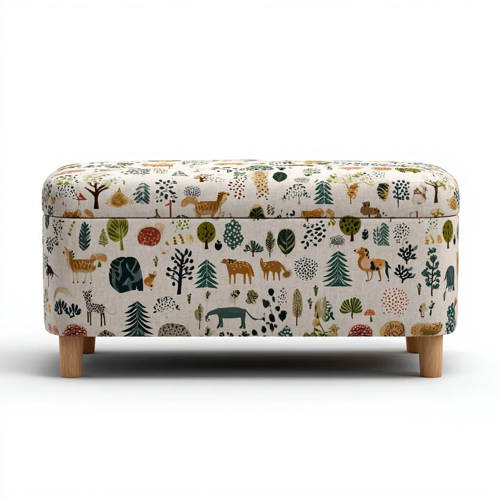 Este banco de dormitorio ofrece un diseño funcional con tapizado estampado en tonos claros que aporta un estilo natural y decorativo al ambiente. Su forma compacta y acabado suave lo hacen adecuado para dormitorios y espacios de descanso.
