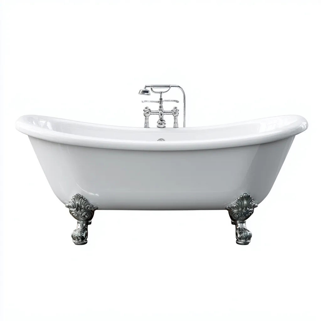 Esta bañera independiente de estilo clásico presenta una silueta curvada y bordes elevados, creando una estética elegante y tradicional. Su diseño profundo permite una experiencia de baño relajante y envolvente en cualquier cuarto de baño.