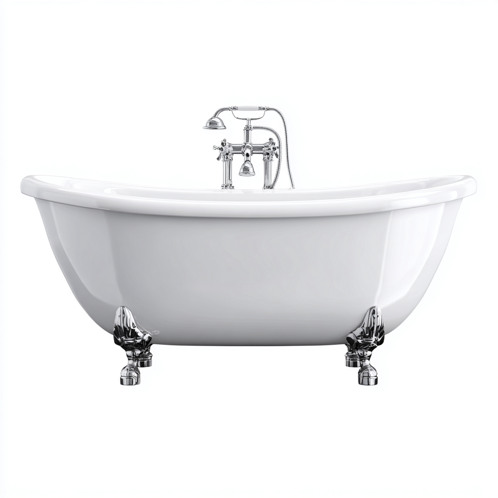 Fabricada en hierro fundido con recubrimiento esmaltado, ofrece una superficie resistente, suave y fácil de limpiar. El acabado en color blanco se complementa con patas ornamentales en tono cromado, aportando una estética refinada y duradera.