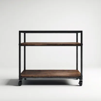 Este carrito de cocina de estilo industrial ofrece una solución práctica y moderna para añadir espacio de almacenamiento y superficie auxiliar. Su combinación de estructura metálica y estantes de madera proporciona un aspecto robusto y decorativo.