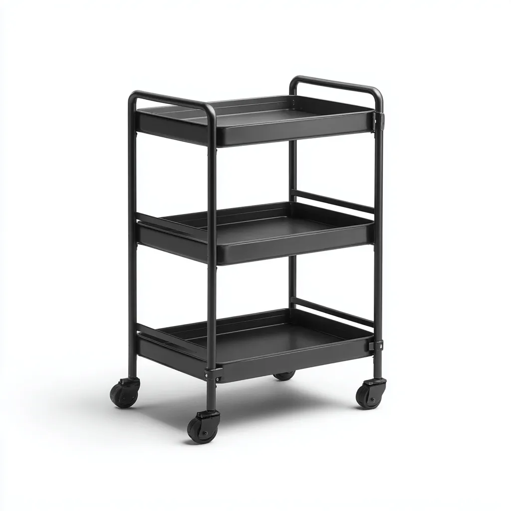 El carrito cuenta con tres niveles de almacenamiento que facilitan la organización de diversos elementos. Sus ruedas integradas permiten desplazarlo sin esfuerzo y ubicarlo donde se necesite.