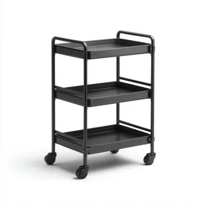Este carrito de cocina ofrece un diseño moderno y funcional, ideal para organizar utensilios, alimentos o accesorios del hogar. Su estructura ligera y líneas simples lo convierten en una pieza versátil para diferentes espacios.