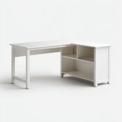 Fabricada en tablero de madera y MDF con un acabado en color blanco que aporta un aspecto limpio y moderno. La estructura es estable y proporciona un soporte adecuado para el uso diario.
