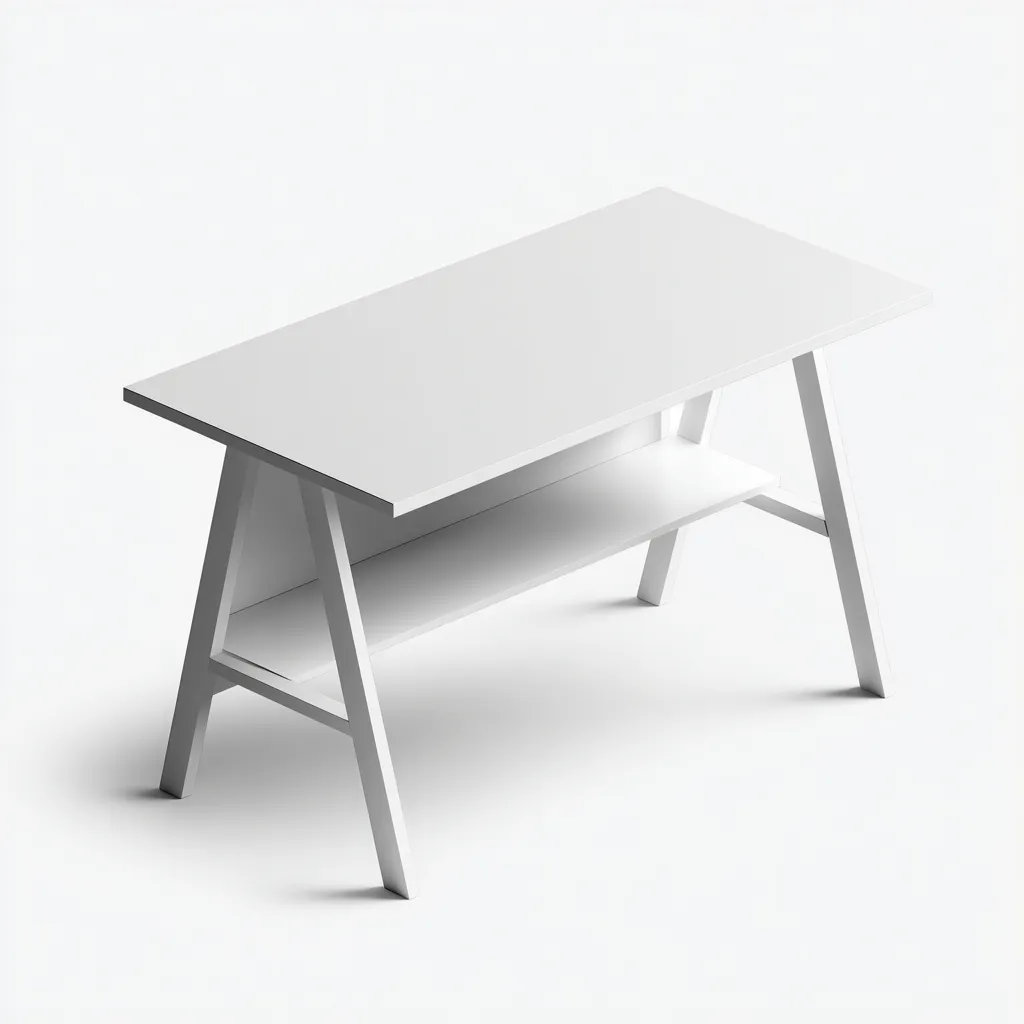 Fabricada en tablero de madera con acabado en color blanco, ofrece una superficie lisa, resistente y fácil de mantener. Las patas en forma de caballete aportan un estilo contemporáneo y buena estabilidad.