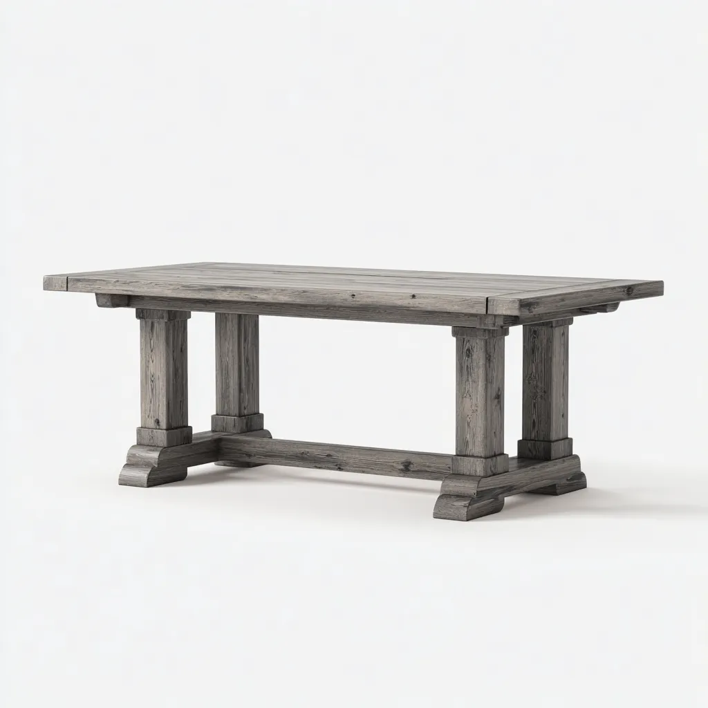Mesas de comedor madera-maciza 200x95x78 cm - gris - diseño rústico de doble pedestal