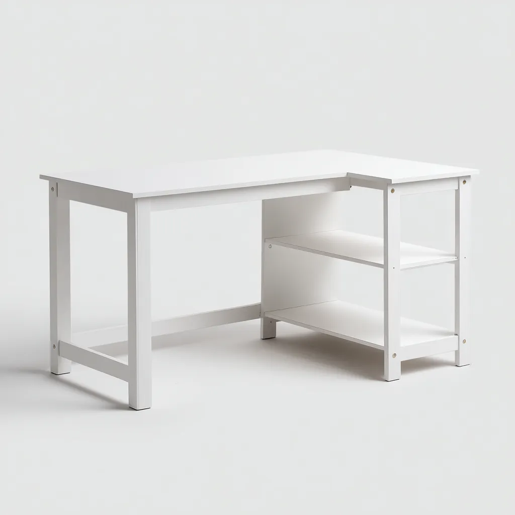 Mesas de oficina madera-lacada 120x60x75 cm - blanco - diseño con estantería lateral