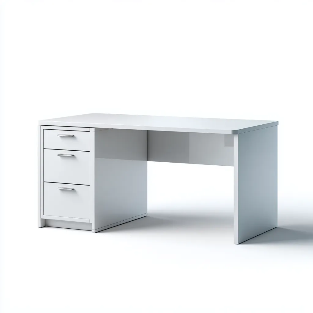 Esta mesa de oficina en color blanco proporciona una superficie amplia para ordenador documentos y material de trabajo Su diseño moderno de líneas rectas permite integrarla en distintos entornos profesionales y domésticos
