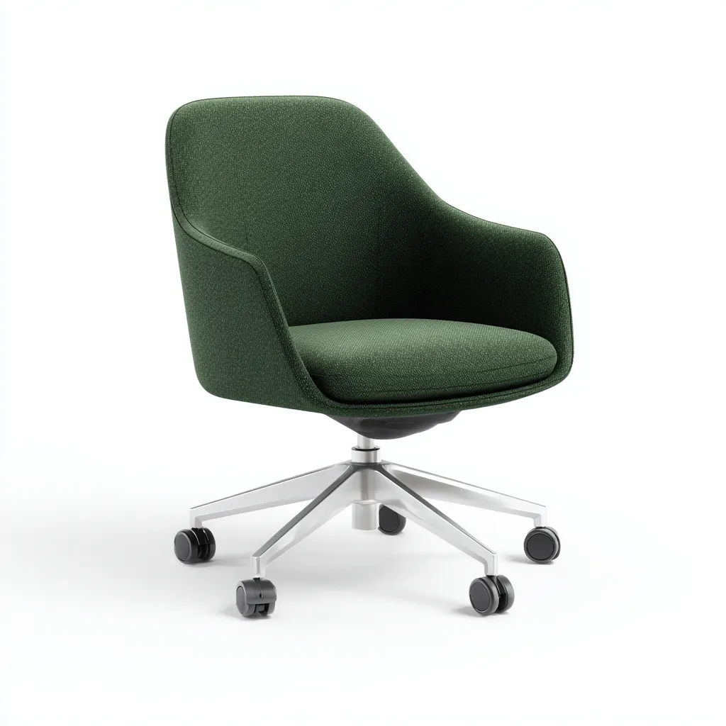 Esta silla de oficina presenta un diseño moderno y acogedor, proporcionando comodidad y estabilidad durante las horas de trabajo frente al escritorio. Su asiento acolchado y su respaldo envolvente ofrecen una experiencia ergonómica agradable.