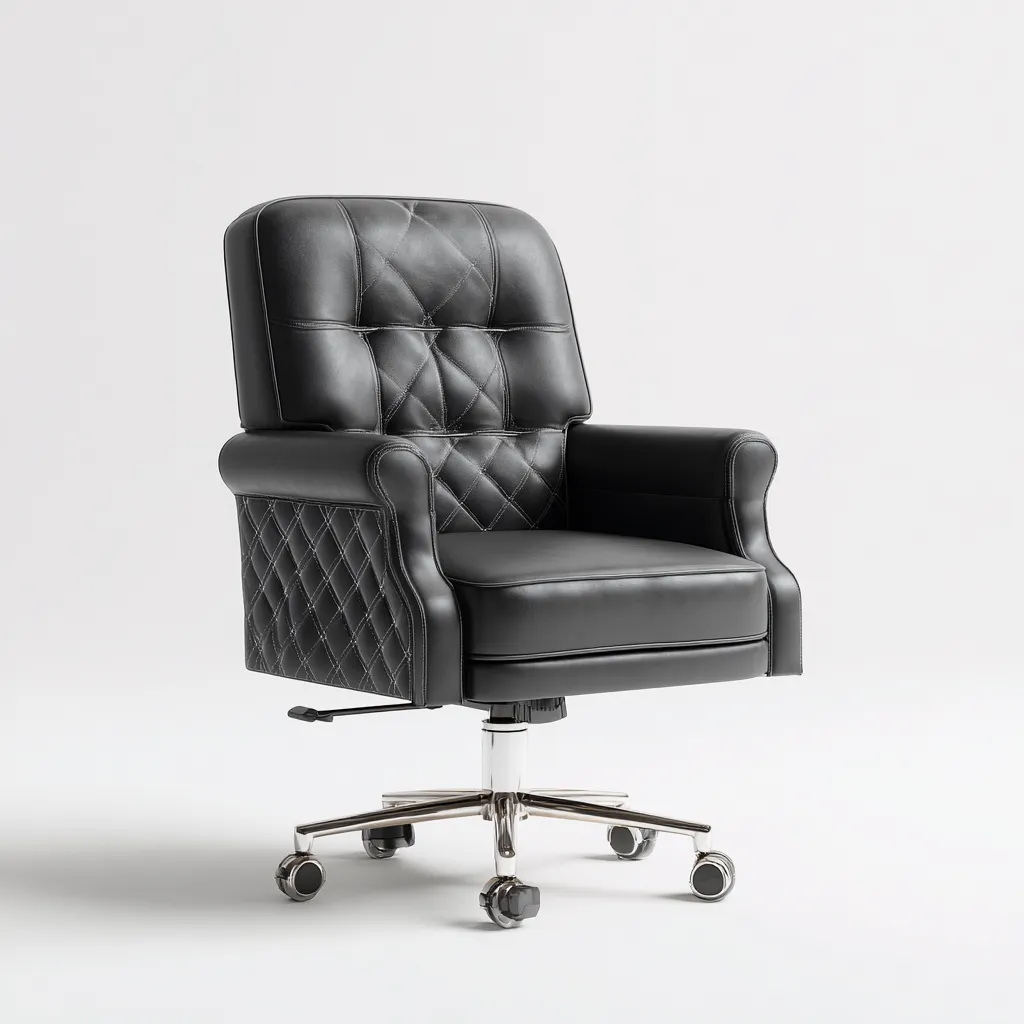 Esta silla de oficina ofrece un estilo ejecutivo clásico con un alto nivel de comodidad, ideal para largas jornadas de trabajo en el escritorio. Su acolchado grueso y su diseño envolvente proporcionan una experiencia de uso estable y confortable.