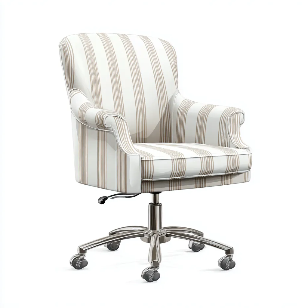 Silla de oficina tapizada en tela 70x65x100 cm - blanco-beige - con asiento acolchado y base giratoria para despacho