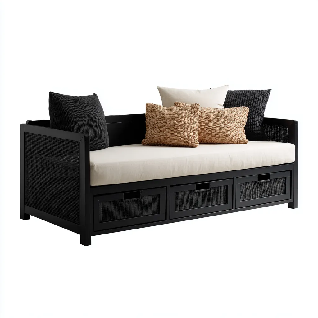 Sofá cama de madera con cajones 200x90x80 cm - negro-beige - diseño moderno