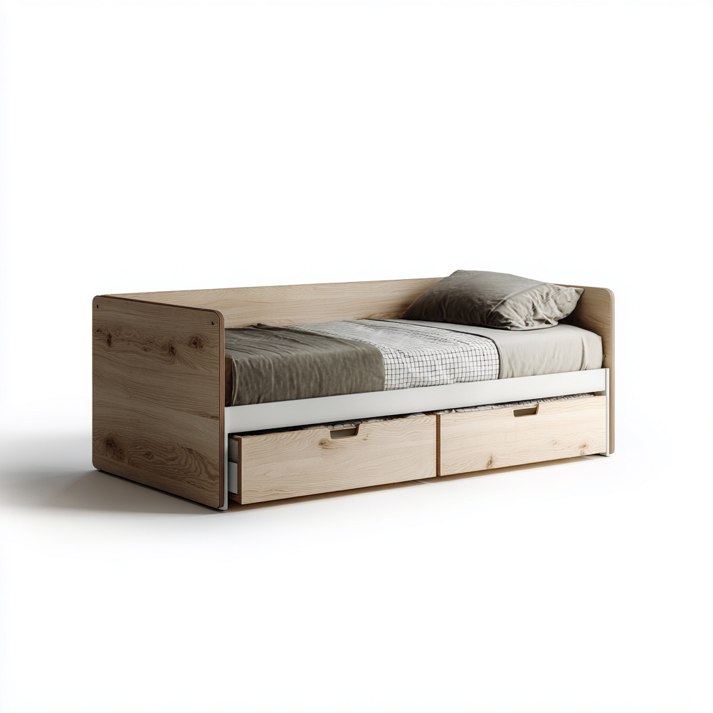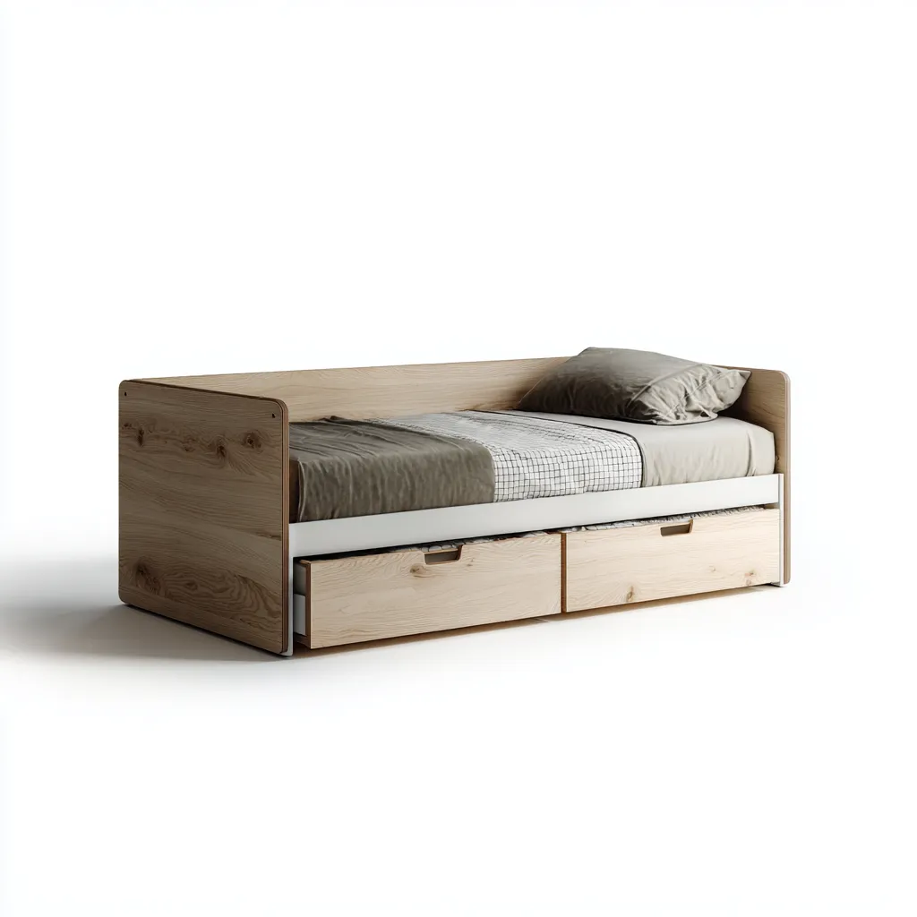 Sofá cama madera tapizado 197x85x78 cm - madera clara-gris - diseño minimalista
